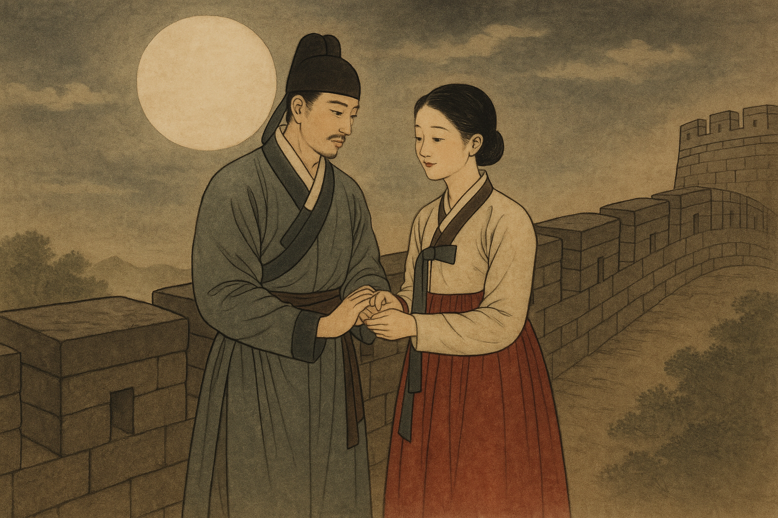 그들의 사랑은 신분의 벽 앞에서 결코 결실을 맺을 수 없었지만, 달빛 아래 성곽 위에서 나눈 약속은 오늘날까지도 전해지는 설화로 남아 있습니다.