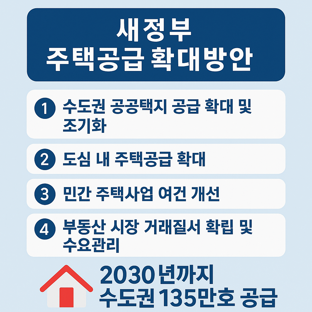 새정부의 주택공급 확대방안은 단순히 공급 물량을 늘리는 차원을 넘어, 도심 재건축·재개발, 공공택지 효율화, 민간 참여 활성화, 불법 거래 단속까지 종합적으로 아우르는 대책입니다. 주택시장 안정과 국민 주거 복지 향상이라는 두 가지 목표를 동시에 달성하기 위한 전략이라 평가됩니다.